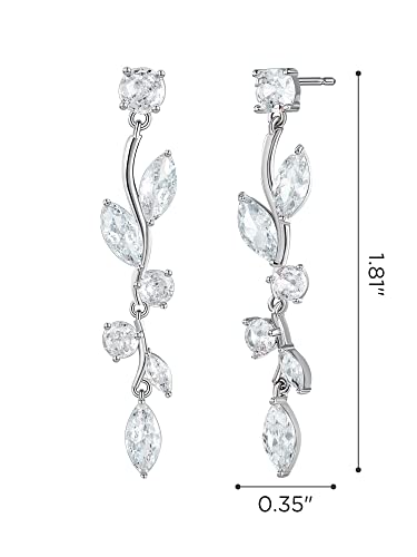 HOT ! SWEETV Vine Wedding Earrings for Brides, Bridesmaids Earrings Gifts, Leaf Bridal Drop Earrings, Silver Cubic Zirconia Dangling Earrings for Prom Formal Party