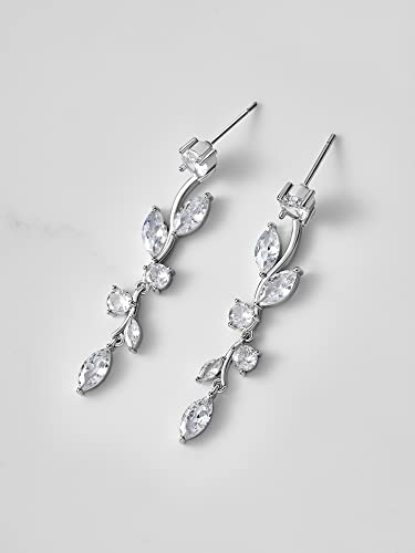 SWEETV Vine Wedding Earrings for Brides, Bridesmaids Earrings Gifts, Leaf Bridal Drop Earrings, Silver Cubic Zirconia Dangling Earrings for Prom Formal Party 1