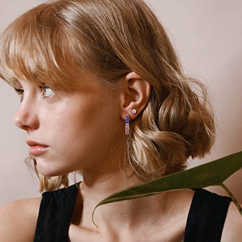 • ❤️🤍💙【American Flag Earrings】:American flag stand for pure and holy patriotism spirit.These crystal hoop earrings uses the American flag color scheme.Classic mix of red white and blue crystals.You can wear these patriotic earrings on Independence Day to show patriotic Spirit.