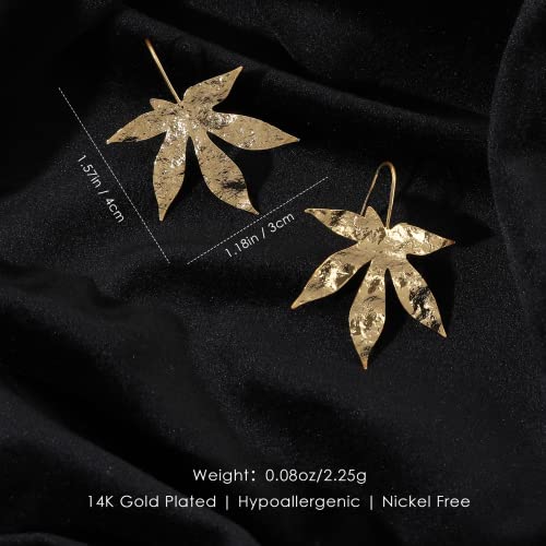 • 【QUALITY】 Maple leaf earrings are the perfect for women. This leaf dangle earring is handmade with thickened 14K Gold Plated process is not easy to fade, durable and polished perfectly. This is a sensitive ear suitable for stud jewelry. No Nickel, hypoallergenic, safe to wear, long-lasting color retention, harmless to the body. Size: 1.18*1.57in(3*4cm). Weight: 0.08oz(2.25g/earring).