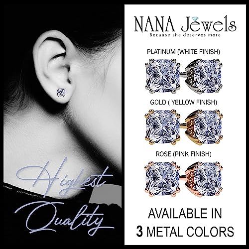 NANA Jewels Cushion Cut Simulated Diamond Stud Earrings 14K Solid Gold Post & Sterling Silver -0.60ctw-4.00ctw CZ 5