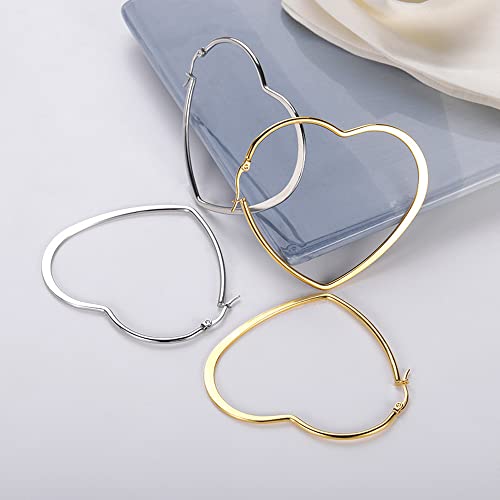 4 Pairs Stainless Steel Heart Earrings Hypoallergenic Big Heart Hoop Earrings Gold Plated Set For Women Men 5