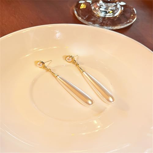 HOT ! Teardrop Pearl Earrings Vintage Elegant Pearl Drop Earrings Waterdrop Long Dangle Earrings Hypoallergenic Gold Plated Pierced Stud Earrings Bridal Jewelry for Women