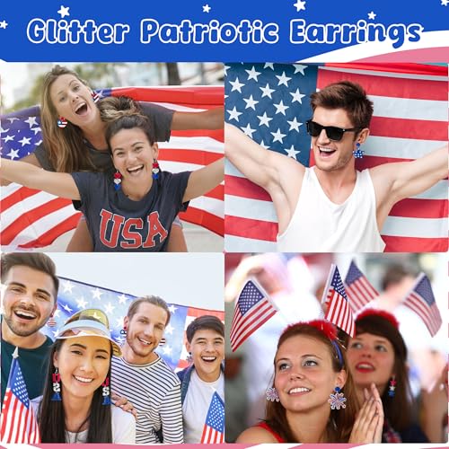• Quality Material: Our patriotic American flag earrings is made of glitter acrylic and the ear hooks is 316 stainless steel. These earrings are designed to last. The comfortable and lightweight material makes them suitable for all-day wear, ensuring they stay looking great even with daily use.