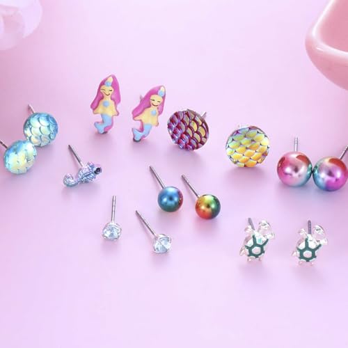 • Various Stud Earrings- You will receive 30 pairs of small pierced stud earrings containing pearl ball stud earrings, fishtail earrings, turtle pierced earrings, fish scale earrings, mermaid earrings, dolphin earrings, scallop earrings, seashell earrings, Starfish stud earrings, rainbow-colored ball stud earrings, fish earrings, crystal pierced stud earrings