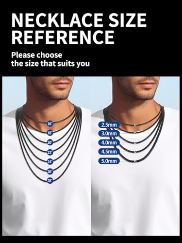 HOT ! Fiusem Black Flat Box Chains for Men, 2.5/3/4/4.5/5mm Stainless Steel Chain Necklace, Necklaces for Men and Women 16-28 Inches