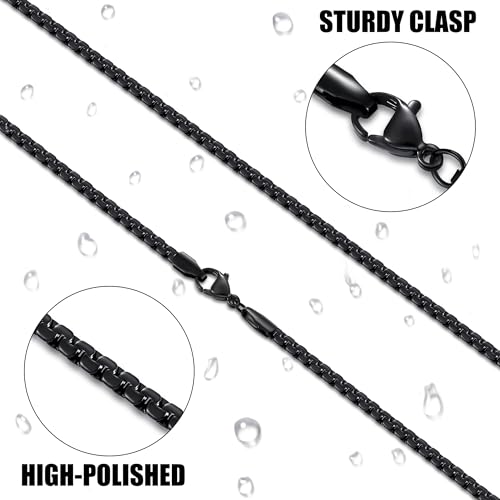 Fiusem Black Flat Box Chains for Men, 2.5/3/4/4.5/5mm Stainless Steel Chain Necklace, Necklaces for Men and Women 16-28 Inches 2