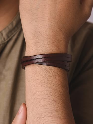 HAQUIL Artisanal Multi-Wrap Brown Leather Bracelet with Vintage Metal Accents for Men 1