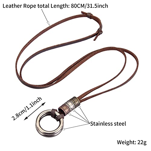 • 𝐀𝐝𝐣𝐮𝐬𝐭𝐚𝐛𝐥𝐞 𝐒𝐢𝐳𝐞 : The Long Leather Chain Total Length : 80 cm(31.5 inch), Round Double Rings Pendant Diameter: 2.8 cm(1.1 inch) ,Weight: 22 g .One Size fit Almost Everyone Necks, You can Adjust The Leather Rope Length to Meet your Necks