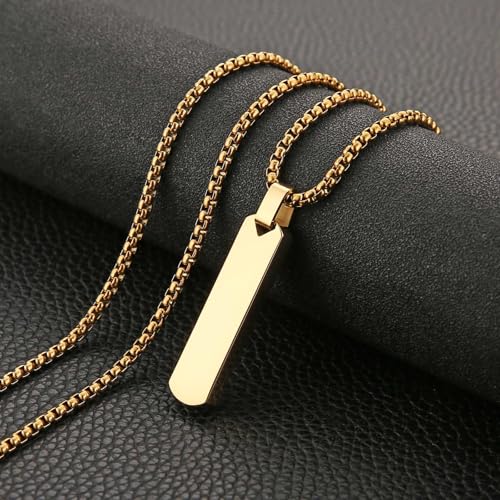 HZMAN Bar Pendant Necklace for Men High Polished Simple Cool Stainless Steel Vertical Cuboid Bar Necklace Jewelry Gift 6