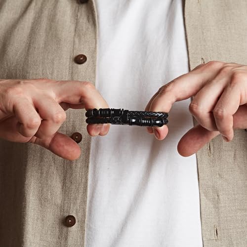 • Elevate Your Style: POLLDAN's black bracelet for men is designed to complement any outfit, adding a touch of sophistication and elegance to casual and formal looks alike. Feel confident as you wear this sleek accessory, crafted for the modern man who values understated luxury.