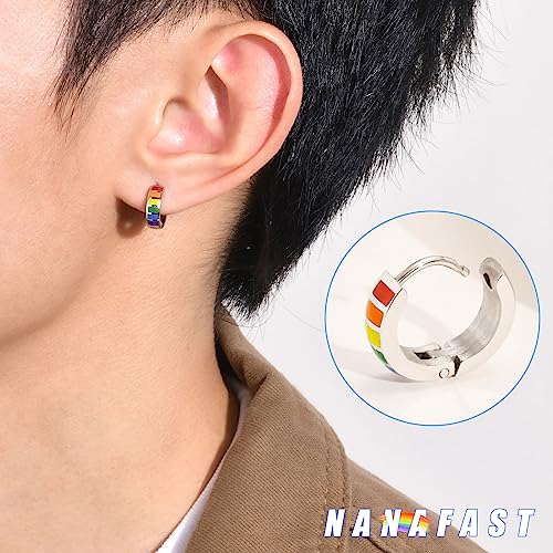 HOT ! Nanafast Stainless Steel Rainbow Small Huggie Hoop Earrings LGBT Pride Earrings for Women Men Lesbian Bisexual Transgender Nonbinary Asexual Flag Earrings LGBTQ Pride Jewelry