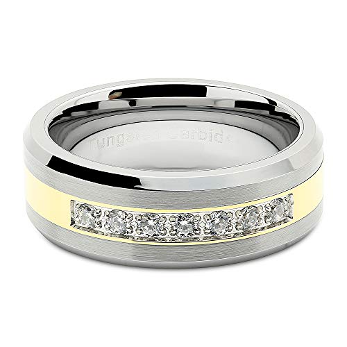 100S JEWELRY Tungsten Rings for Men Women Wedding Band Two Tone Gold Silver Cz Inlay Size 6-16 5