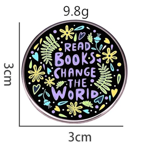 zhanghaoran Read Books Change the World Enamel Brooch Round Flower Words Enamel Pin Book Lover Collar Pin Book-themed Lapel Pin Badge Jacket Decoration Denim Backpack Cloth Gift for Friends 6