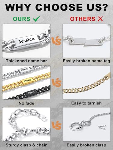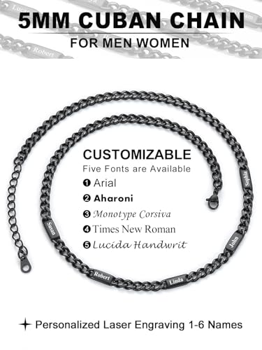 • [Personalized Cuban Link Chain for Men Women] Mens stainless steel cuban chain necklace engraving with 1-5 names. Whether it's a casual day at the office or a night-out with friends, this personalized name necklace is a perfect companion. A meaningful gift for your family members, friends and loved ones.