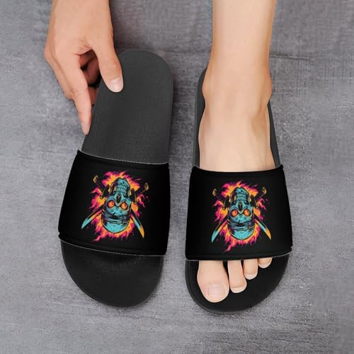 HOT ! Angry Skull Flame Non Slip Slides Sandals for Women Men Quick Drying Shower Shoes for Bathroom Pool Beach