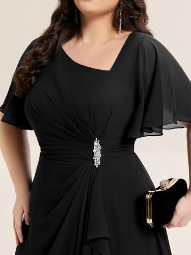 HOT ! Ever-Pretty Plus Women's Asymmetrical Neck Short Sleeves Chiffon Rhinestone Maxi Plus Size Formal Mother of The Bride Dresses
