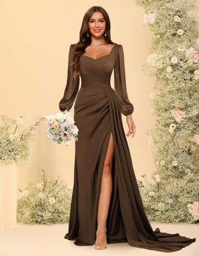 More information about Stylefun Mermaid Satin Prom Dresses with Slit Long Sleeve Formal Party Dress CYM267