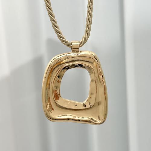 • Geometric Pendant Necklace: Rope-style chain carries an abstract hollow square drop in warm gold-tone alloy—eye-catching yet versatile for tees to plunge necklines.