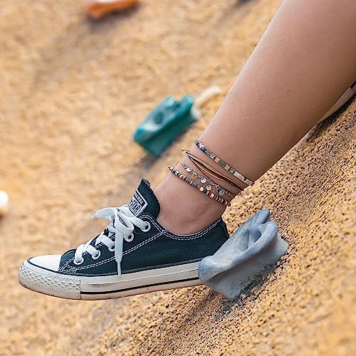 FANCY SHINY Waterproof String Anklets Boho Clay Beads Ankle Bracelets Cute Cloth Stainless Steel Coin Anklet Set Beach Summer Jewelry for Women 7