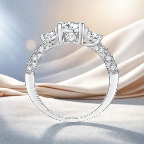 Blocaci Princess Cut Engagement Rings for Women Platinum Plated Silver 1-3/4 Carat(ctw) 3 Stone Moissanite Engagement Rings Vintage Women's Promise Ring 6
