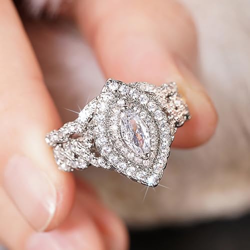 Luxury Bright Marquise Cut Cubic Zirconia 2Pcs/Set Rings for Women Trendy Wedding Band Jewelry 7