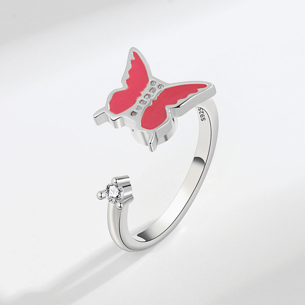 Red Elegant Butterfly Rings For Women Korean Trendy Inlaid Zircon Open Ring Sweet Girls Jewelry Gift 216045195246 5