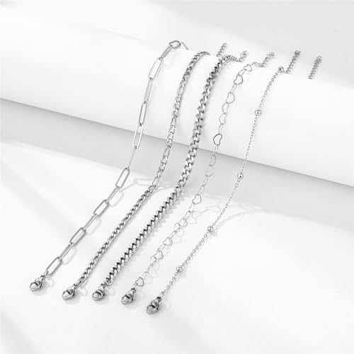 • DESIGN:the anklet set includes 5 different styles and separately. All styles are fashion and classic. You can wear various anklets as you wish. The set contains Cuban/Figaro/satellite/paperclip/mirror chain. The anklet set is lightweight and a great decoration for your ankle.