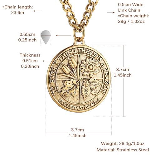 HZMAN Coin Necklace Men's Stainless Steel Necklace Pendant Retro Ecclesiastes Bible Verse Round Medal Necklace Jewelry Gift 4