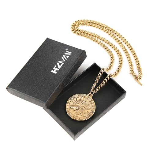More information about HZMAN Coin Necklace Men's Stainless Steel Necklace Pendant Retro Ecclesiastes Bible Verse Round Medal Necklace Jewelry Gift