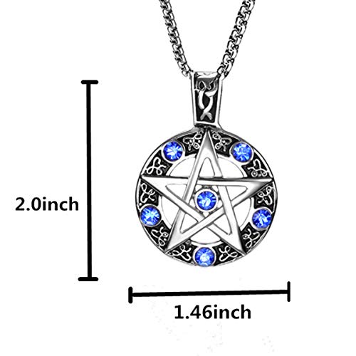 Leprato Stainless Steel Pentagram Pendant Necklace High Polished Blue Crystal Pentacle Charm Amulet Pendant Necklace for Men Women 4