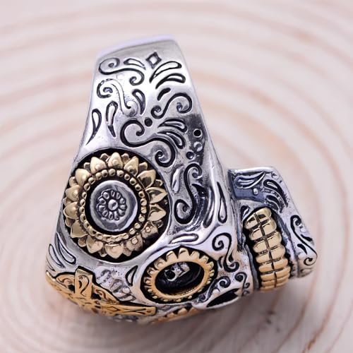 Real 925 Sterling Silver Mexican Sugar Skull Head Ring Golden Eye Cross Punk Gothic Biker Jewelry for Men Women Size 8-13 5
