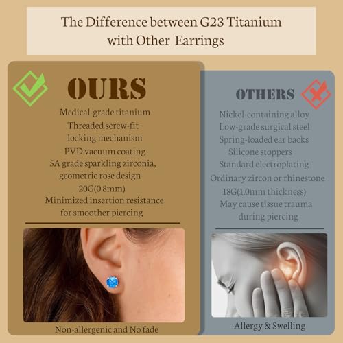 • Hypoallergenic Pure Titanium Earrings: Made of high-quality G23 titanium, nickel free and hypoallergenic, safe for sensitive ears. They are also lead free and cadmium free, anti-allergenic, ensuring long-lasting use without any irritation or discomfort