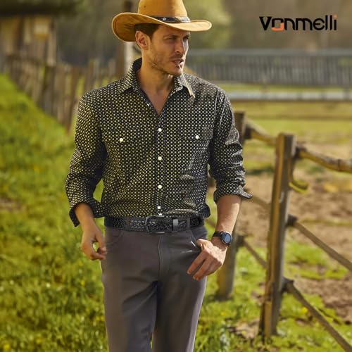 VONMELLI Western Cowboy Belt for Men, Cowboy Leather Belt Embossed Mens Western Belts for Jeans 5