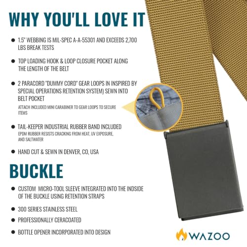 More information about WAZOO Cache Belt | Anti-Theft Money Belt for Travel & Survival | TSA Approved | Military Spec 2,700 lb Rated Webbing | Stainless Steel Buckle | Made in USA (X-Large)