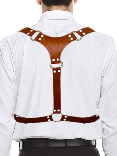 Fstrend Men's Chest Harness Brown Leather Shoulder Belt Strap Fashion Rave Body Accessory 5