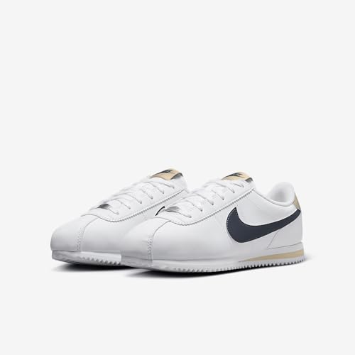Nike Cortez Big Kids' Shoes (DM0950-114, White/Desert Khaki/Thunder Blue) 6