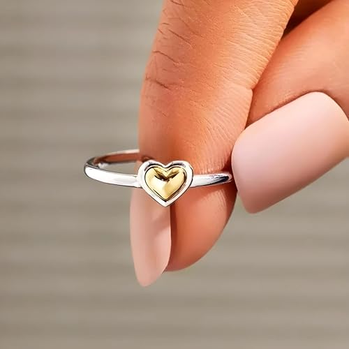 Heart Ring Heart Rings for Women Metal Two Tone Love Rings Eternity Wedding Band Accessories Modern Female Jewelry Dropship 4