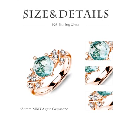 925 Sterling Silver Hexagon Natural Moss Agate Ring with CZ for Women infinity Promise Engagement Rings Jewelry for Wife Her 6