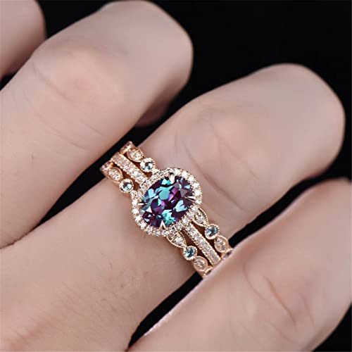3Pcs Vintage Rings Set for Lady Oval Cut CZ Simulating Diamond Engagement Rings Elegant Bridal Wedding Bands (A, 6) 7