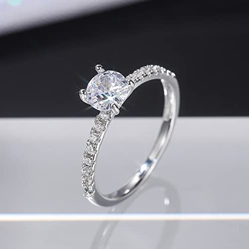 Women Inlaid Zircon Engagement Ring Simulated Diamond Proposal Ring Wedding Band for Bride Exquisite Jewelry (Silver, 9) 4