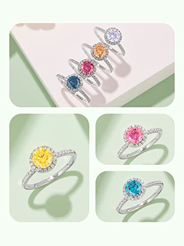 White/Pink/Yellow/Green/Black/Blue Moissanite Rings Bride Jewelry 1Ct VVS1 Moissanite Engagement Rings 925 Sterling Silver imitation Diamond Band Ring Wedding Engagement Women's Ring Christmas Gifts for Her(Size 5-10) 4