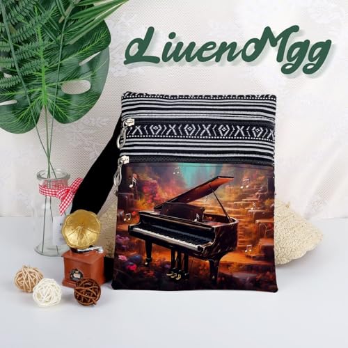 Vintage Piano Messenger Bag Small Ethnic Pattern Printed Adjustable Strap Crossbody Zipper Bag Vintage Piano Phone Bag Wallet Cute Shoulder Handbag for Women 1