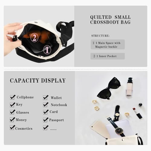 • 【Perfect Size】6.5 Inches ×8.27 Inches (TIPS: manual measuring permissible error). this crossbody bag is portable and lightweight, easy to carry. You can bring your items to anywhere. It is enough to carry phone, headphones, glasses, wallet, or daily cosmetics makeup tools or other small items.