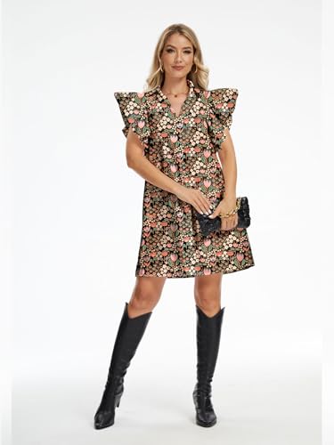 • Chic & Feminine Design – Featuring delicate ruffle details on the shoulders, this floral dress adds a playful yet elegant touch to your outfit. The V-neckline, drawstring waist, and flared hem create a flattering silhouette that enhances your natural beauty