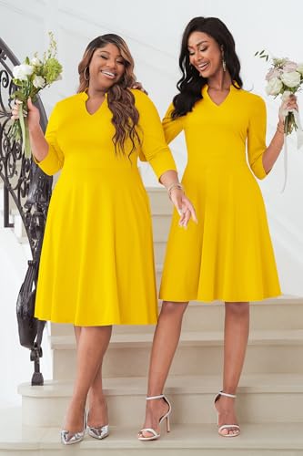 More information about CLOCOR Plus Size Dress for Women Semi Formal Church 3/4 Sleeve Fit and Flare Casual Dresses V Neck with Pockets
