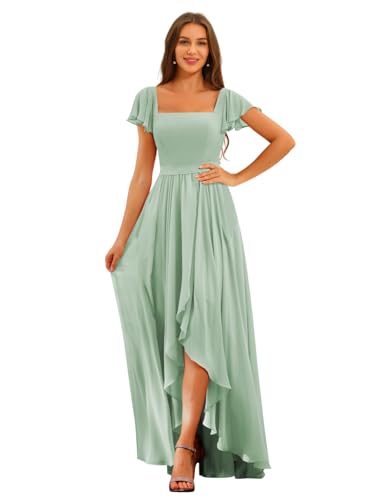 • Occasion: This Flutter Sleeve A Line Square Neck Bridesmaid Dress with slit is perfect for wedding guest dress,evening dresses, formal dresses, semi-formal dresses, gala dresses, cocktail dresses, wedding guest dresses, mother of the bride dress, banquet dress, ball gowns, prom dresses, formal wear dresses, dresses for curvy women