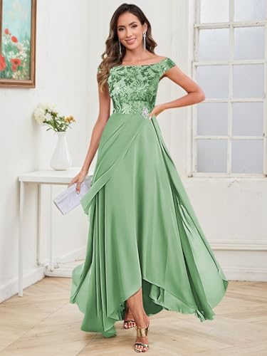 BONOYUER Sequin Mother of The Bride Dresses for Women Off The Shoulder High Low Chiffon Wedding Guest Dress 6
