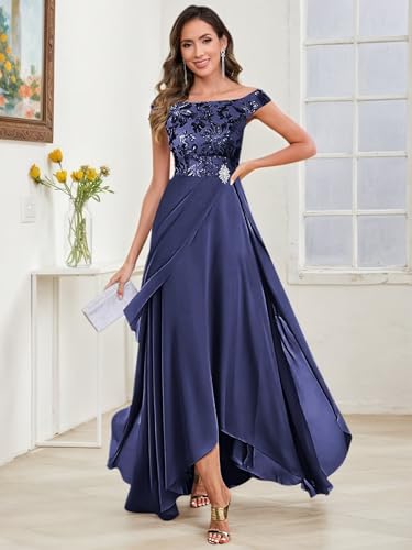More information about BONOYUER Sequin Mother of The Bride Dresses for Women Off The Shoulder High Low Chiffon Wedding Guest Dress