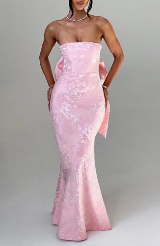More information about Wchecalino Strapless Jacquard Satin Prom Dresses Long 2025 Mermaid Formal Evening Party Gowns with Bow